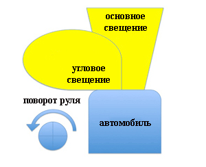 С помощью динамического освещения поворотов, весь источник света поворачивается по горизонтали, когда автомобиль входит в угол поворота. Скорость и угол поворота определяются электронным блоком управления, который собирает информацию от датчика скорости автомобиля, датчика положения рулевого колеса и датчика скорости рыскания.