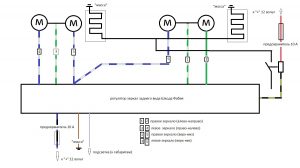 Если вы воспользуетесь моей схемой, то вы сможете установить регулировку и подогрев зеркал практически на любой автомобиль, потому что это стандартный вариант, который используется на подавляющем большинстве транспортных средств. Надеюсь, на рисунке всё понятно, но ещё могу добавить, что здесь использовался переключатель-регулятор от Шкода Фабиа. Поэтому цвета проводов указаны для него. Электродвигатели обозначены буквой «М», нагревательные элементы в виде «змейки». Подогрев зеркал надо подключать через реле, которое управляется «массой». Если еще что-то будет непонятно, звоните по телефону указанному на странице «услуги и контакты».