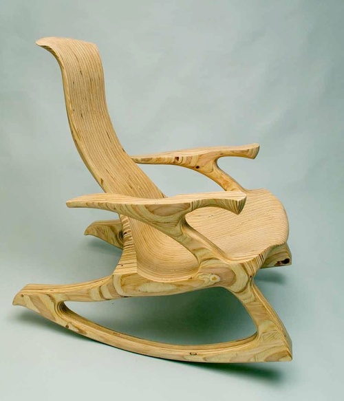 Дизайнеры достаточно часто используют фанеру в качестве материала для создания разных элементов мебели. Для придания ему необходимой формы просто немного намочите водой, после чего изогните ее так, как вам нужно. Далее дождитесь, когда лист высохнет. Но учтите, что чем толще сечение фанеры, тем она менее эластична. Помимо этого необходимо помнить тот факт, что чем оно тоньше, тем меньший вес может выдержать кресло качалка, которое вы сделаете.