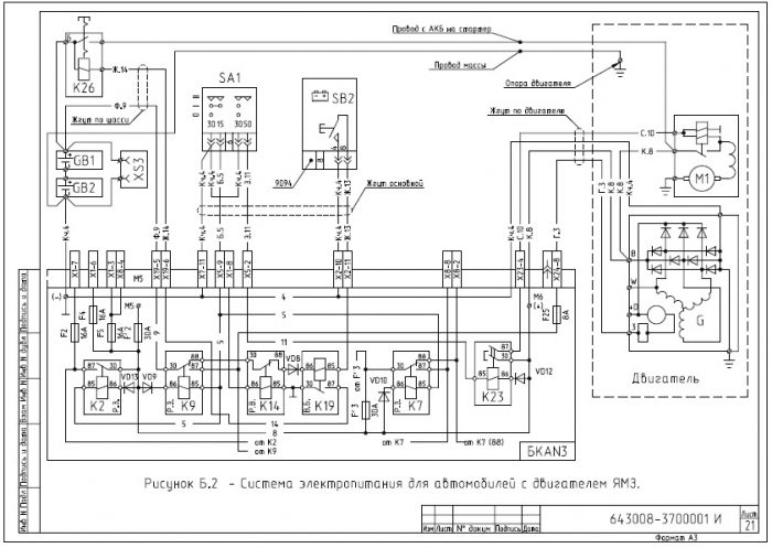 Как-то на одном из сайтов «опросников наткнулся на определение реле разгрузки стартера. В той статье объяснялось, что реле разгрузки клеммы «15» замка зажигания служит для того, чтобы на время прокрутки стартером отключались некоторые мощные потребители. Например, электродвигатель отопителя и стеклоочистителя, фары и автономный подогреватель охлаждающей жидкости. И действительно, на некоторых автомобилях такой вариант используется для того, чтобы «львиная доля» электродвижущей силы аккумуляторной батареи расходовалась на работу стартера. Однако, пусть вас не вводит заблуждение название некоторых реле, которые звучат как»реле разгрузки чего либо…» Например, автомобили семейства Маз 6430 как видно на схеме тоже имеют аж несколько промежуточных (!) реле, имеющих название взятое из руководства по ремонту — «реле разгрузки стартера и приборов». Но если рассмотреть схему, то эти реле всего лишь снимают нагрузку с контактов замка зажигания, никак не влияя на коэффициент полезного действия стартера. Надо сказать, что любой электрик знает о том, что назначение любого реле как раз и состоит в том, чтобы сохранить контакты включателя, снимая с него основную нагрузку. Зачем производители в технической документации «напускают туман» — мне лично — не понятно… Кроме того, почему-то реле называются промежуточными, хотя специалиста и так понятно, что реле находится между включателем и потребителем. Вот так, простая схема может быть вызвать множество вопросов если её описание будет написано без соблюдения общепринятых правил…