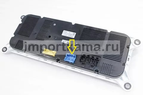 Для этого необходимо отсоединить главный разъем всех проводов, который находится сзади панели. Он синего цвета, и его не перепутать с другими, но для я все равно отметил его на фото желтой стрелкой.