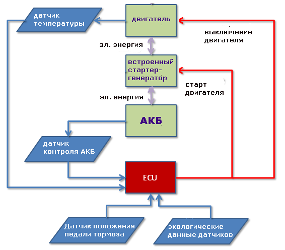 Концепция проста, однако необходимо контролировать и управлять многочисленными параметрами, чтобы обеспечить бесперебойную работу при использовании системы стоп-старт. Система должна следить за состоянием заряда (SOC) батареи, чтобы убедиться, что двигатель запустится снова. Кроме того, контролируется температура двигателя, чтобы избежать постоянных холодных запусков. Это обеспечивает полное сгорание и оптимальную работу каталитического нейтрализатора, что позволяет снизить токсичные выбросы.
