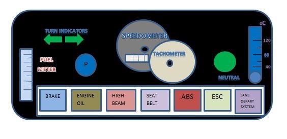 Комбинация приборов в транспортном средстве, как правило, расположена непосредственно над рулевым колесом и отображает такую важную информацию о транспортном средстве для водителя как скорость транспортного средства, уровень топлива и состояние различных транспортных систем. Эта информация обычно представлена визуально в виде стрелочных приборов, цифровых отсчетов и символов-индикаторов. Спидометр обычно является основным в комбинации приборов.
