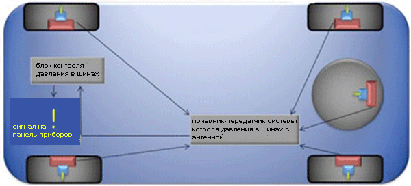 Основные системы анализируют показания датчика давления прикрепленного к колесу автомобиля внутри воздушной камеры шины. Автомобильный приемник немедленно предупреждает водителя, если давление в одной из шин падает ниже заданного уровня.