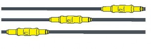 - Заменить участок провода между местами обрыва жёлтым ремонтным проводом из набора или заказанным как запасная часть с тем же сечением (при отсутствии — следующим большим сечением), что и ремонтируемый провод.