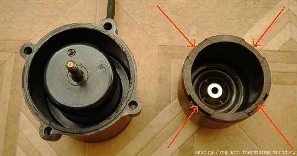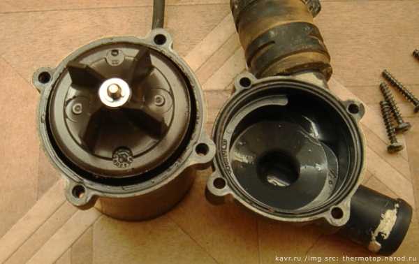 А в том, что конструкция водяного насоса имеет некоторую особенность и крыльчатка насоса вращается не с помощью вала электромотора, а под воздействием магнитного поля. это становится понятно, если снять крышку.