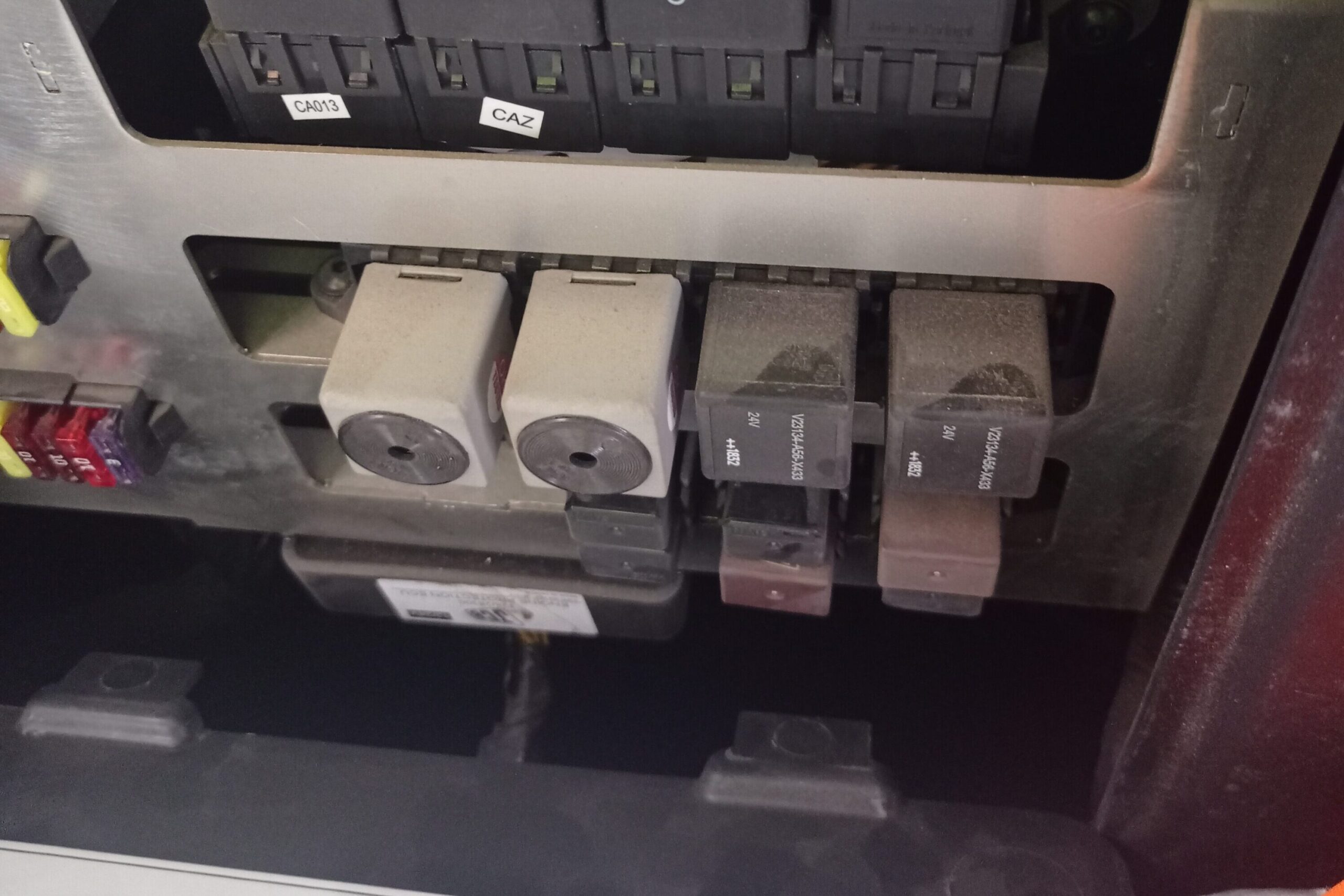 Практически на всех автомобилях и специальной технике схема включения звукового сигнала была одинакова еде совсем недавно. Например, на экскаватора JCB 205 при нажатии на кнопку, включается реле, которое находится в блоке за сидением машиниста (на фото)