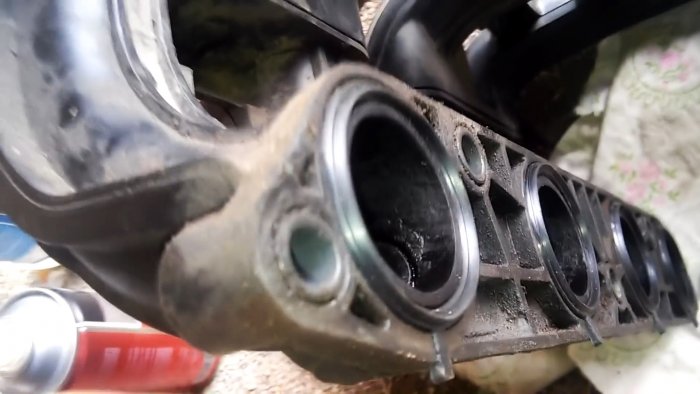 При создании вакуума в коллекторе или наоборот накачки в него давления необходимо просматривать на предмет подсоса в первую очередь сам патрубок от фильтра, так как на нем часто бывают трещинки.
