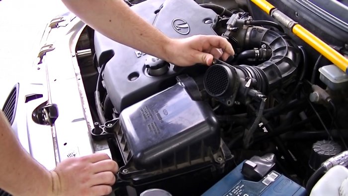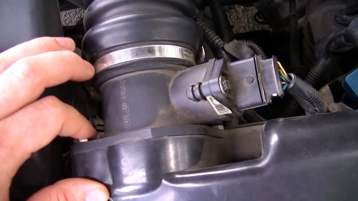 Для быстрого определения есть ли серьезный подсос, нужно отсоединить датчик массового расхода воздуха вместе с патрубком, и перекрыть его ладонью при работающем двигателе.
