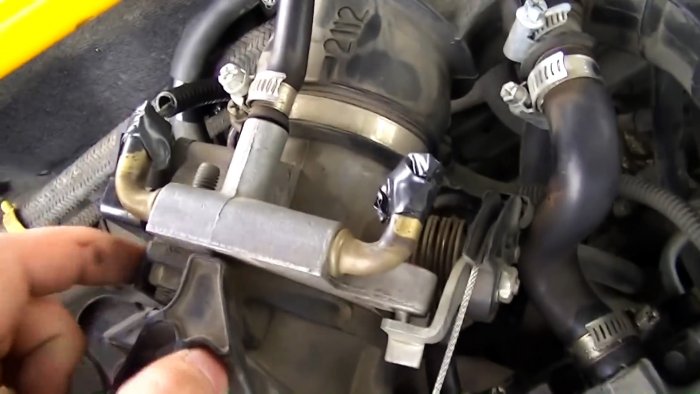 Перед этим стоит поддать газу. В результате в патрубке создастся вакуум, и мотор заглохнет. Нужно продолжать держать ладонь.