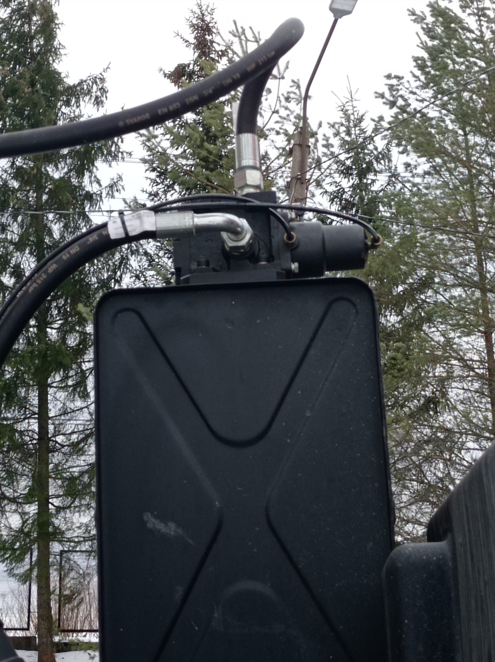 но поступает не сразу, а через клапан-ограничитель подъёма кузова. На фото внизу: