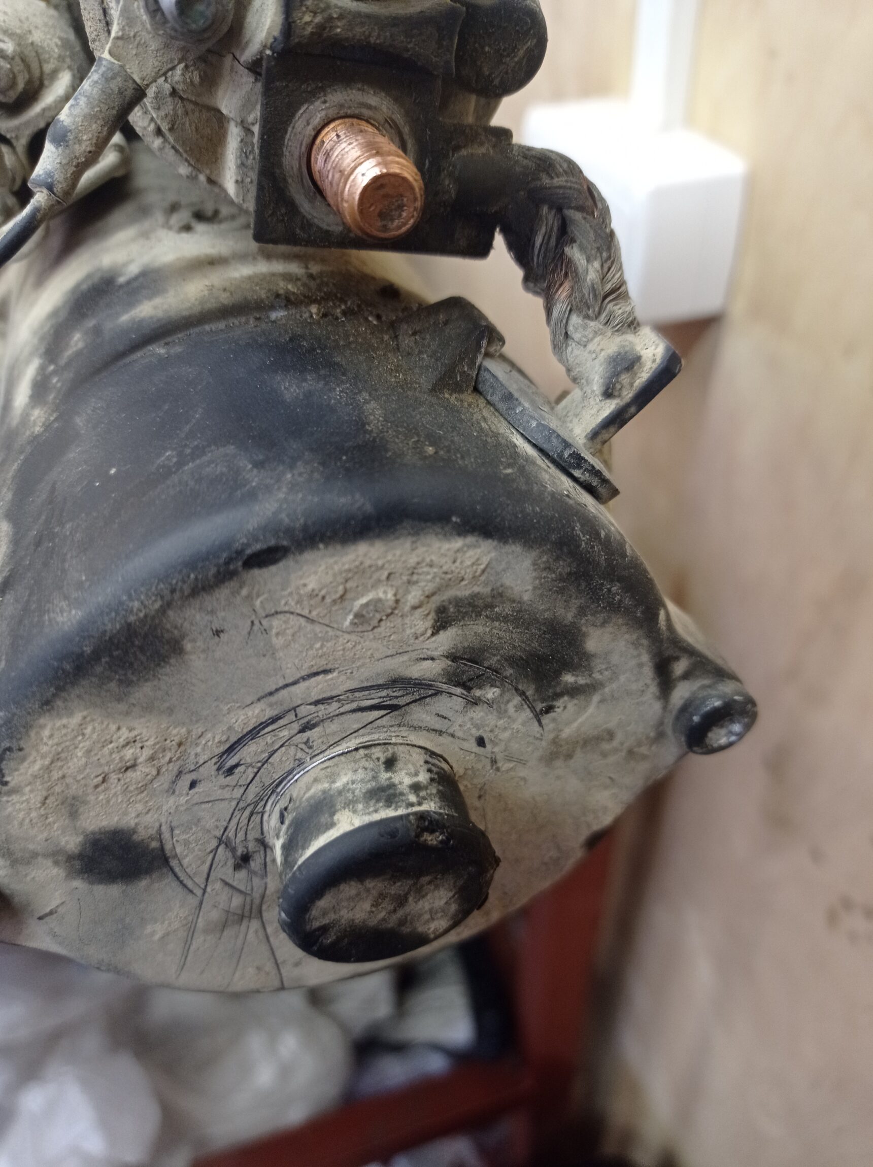 чтобы проверить щёточный узел стартера необходимо снять защитный колпачок в центре задней крышки и открутить гайку крепления провода