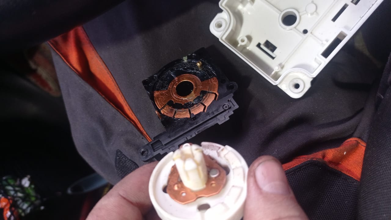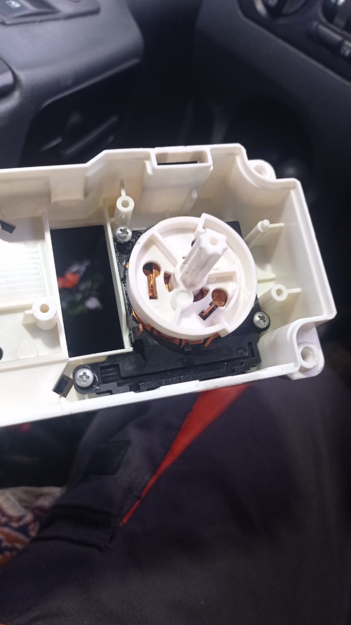 отвинтив шурупы снимаем его и, если слегка надавить на вращательную часть с обратной стороны, то вы легко доберётесь до контактов. Теперь их можно почистить и собирать блок управления в обратном порядке.