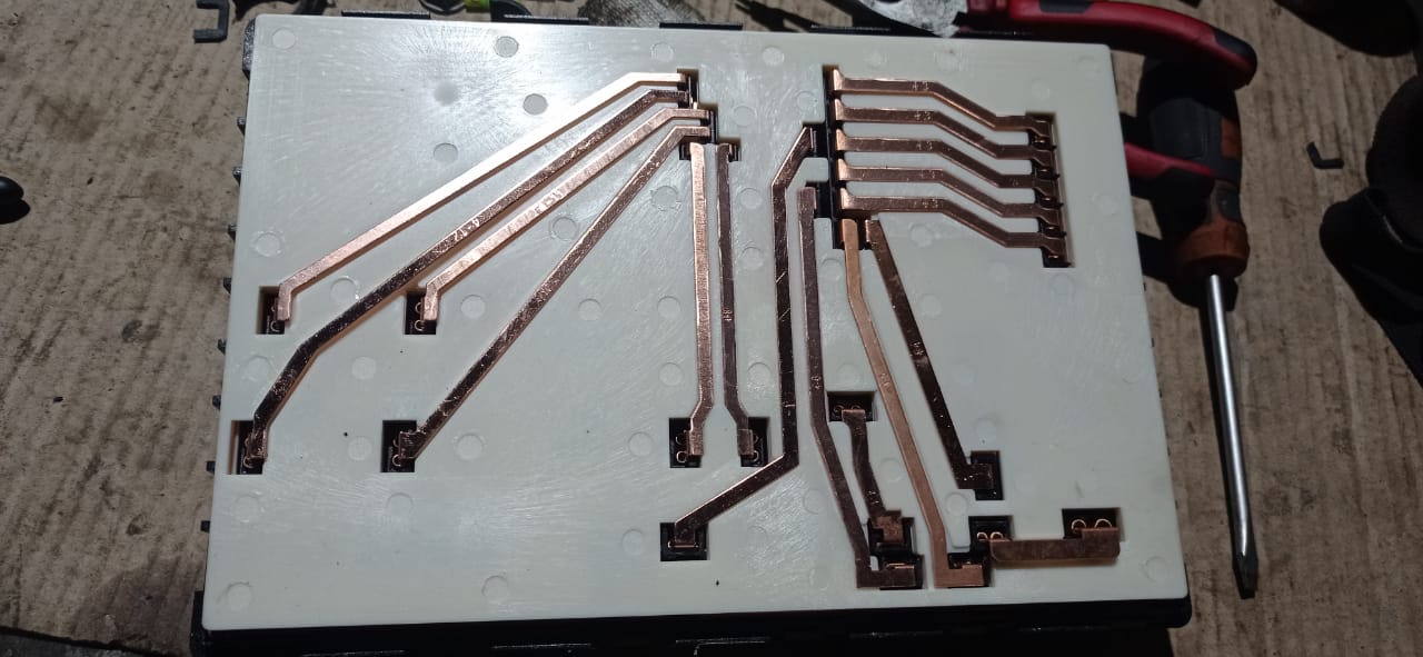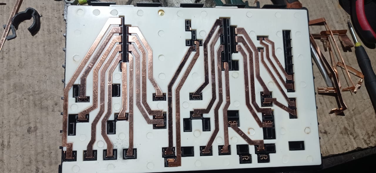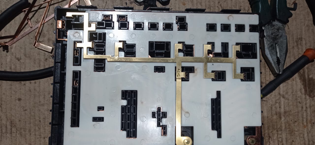 начинка блока как слоёный пирог, состоит из нескольких пластин, в которые установлены медные перемычки с контактами.
